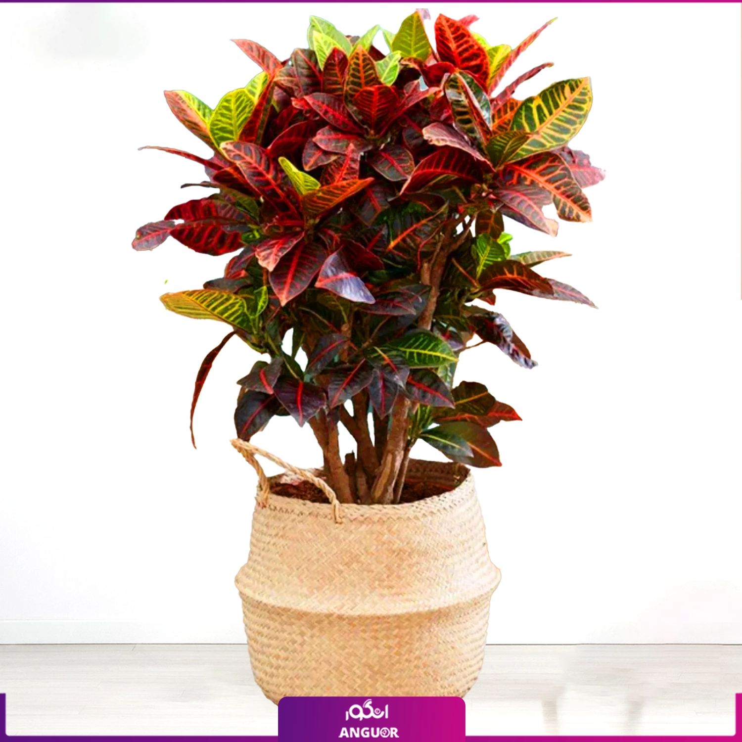 کروتون با گلدان حصیری