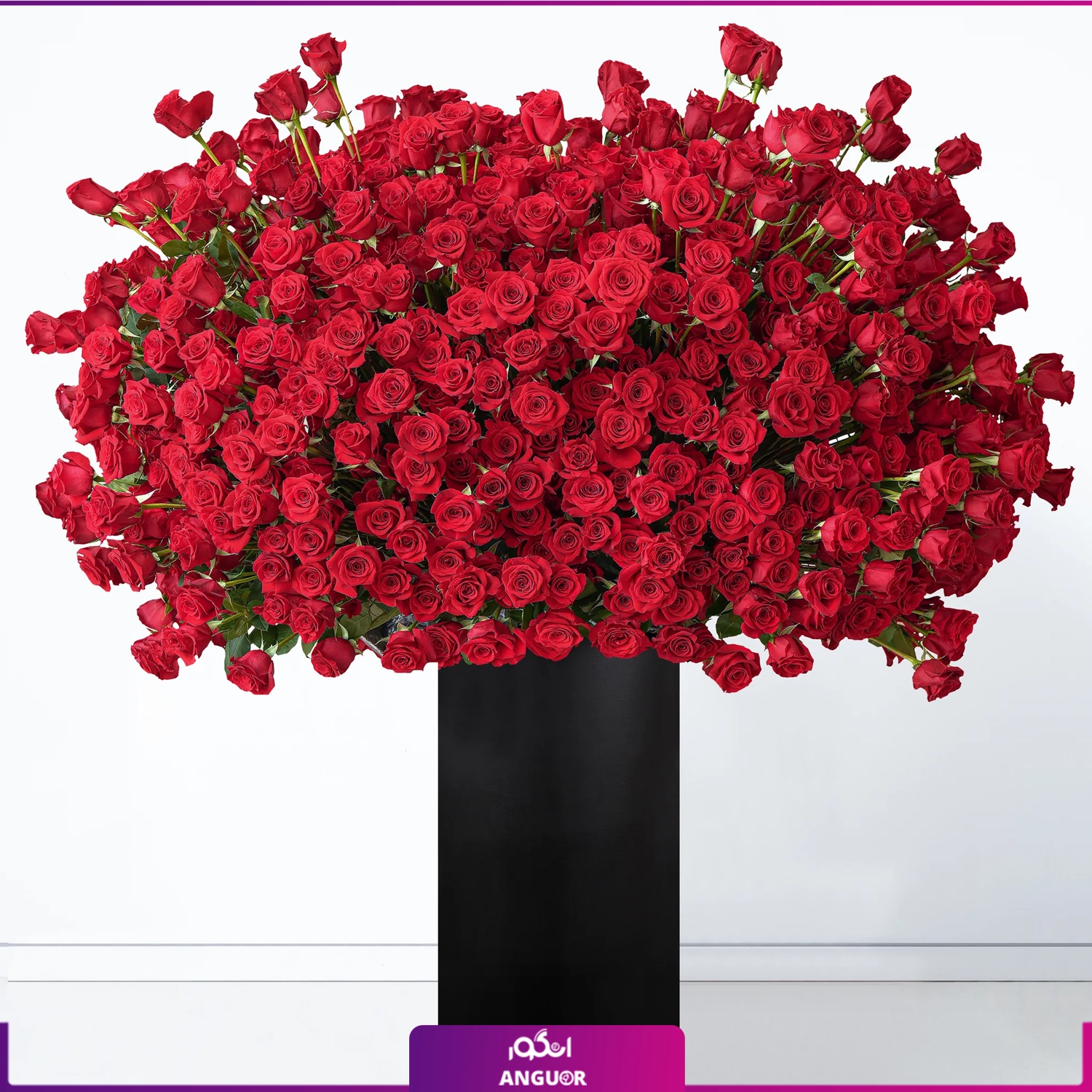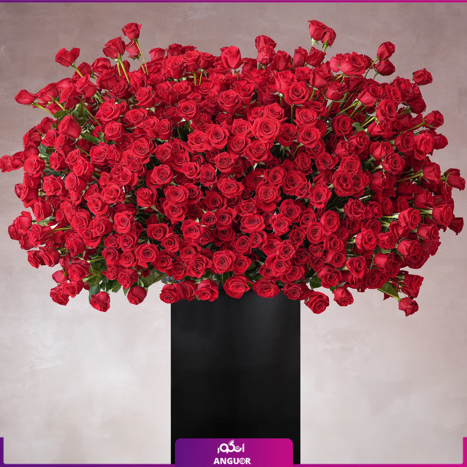 این چیدمان عظیم و نفسگیر، با گردآوری 833 شاخه رز سرخ ممتاز و چیدمان هنرمندانه بر روی یک استند لوکس، تنها یک هدیه نیست، بلکه یک اعلامیه قدرتمند است؛ بیانیهای از عشقی بینهایت، احترامی عمیق و خاطرهای که تا ابد در ذهن حک میشود. این اثر هنری، طراحی شده تا هر نگاهی را به خود خیره کند و یک تاثیر فراموشنشدنی بر جای بگذارد. اگر به دنبال خرید گل لاکچری بزرگ هستید، این باکس یک انتخاب بیرقیب است.