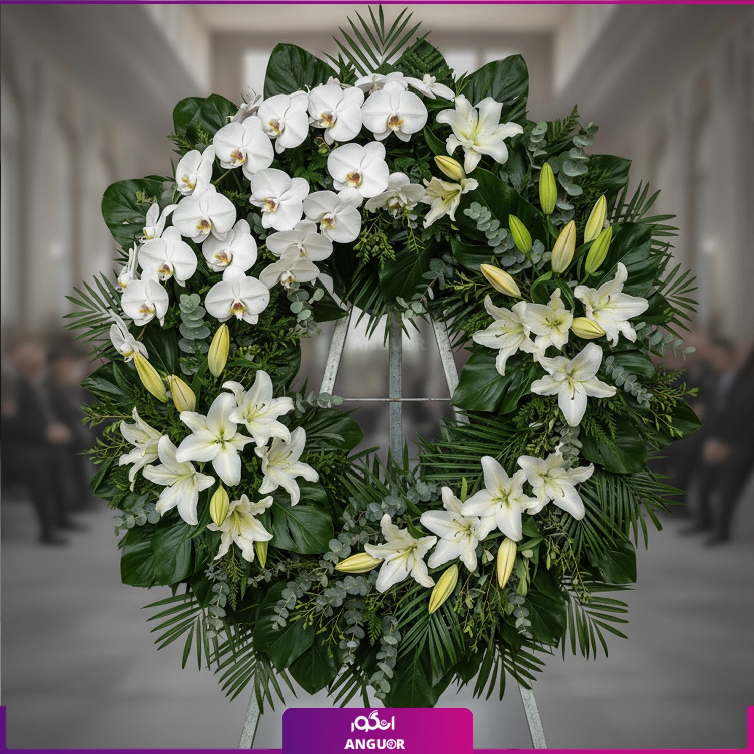تاج گل ترحیم لوکس (ارکیده و لیلیوم سفید) 🕊️🤍