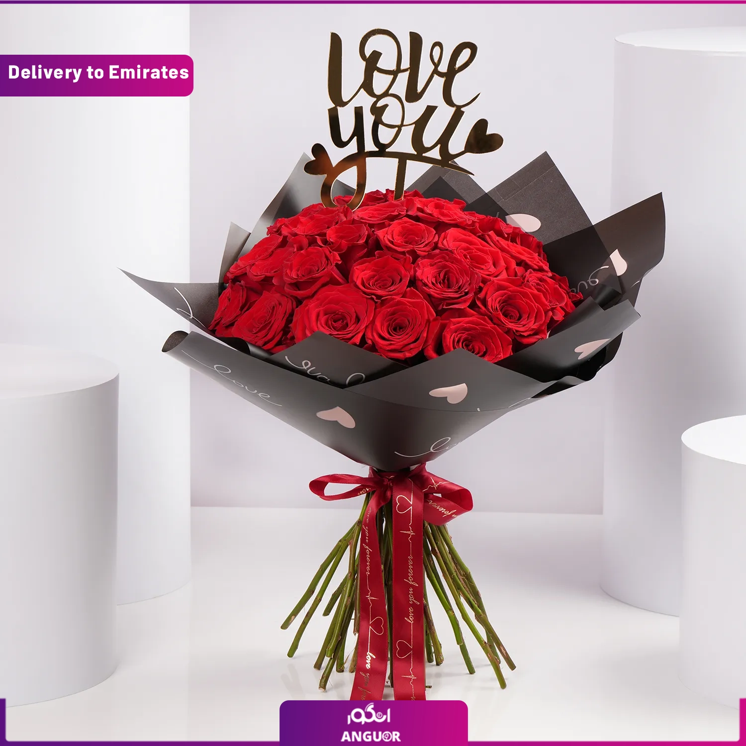 دسته گل رز قرمز 35 شاخه ولنتاین (تحویل در امارات)