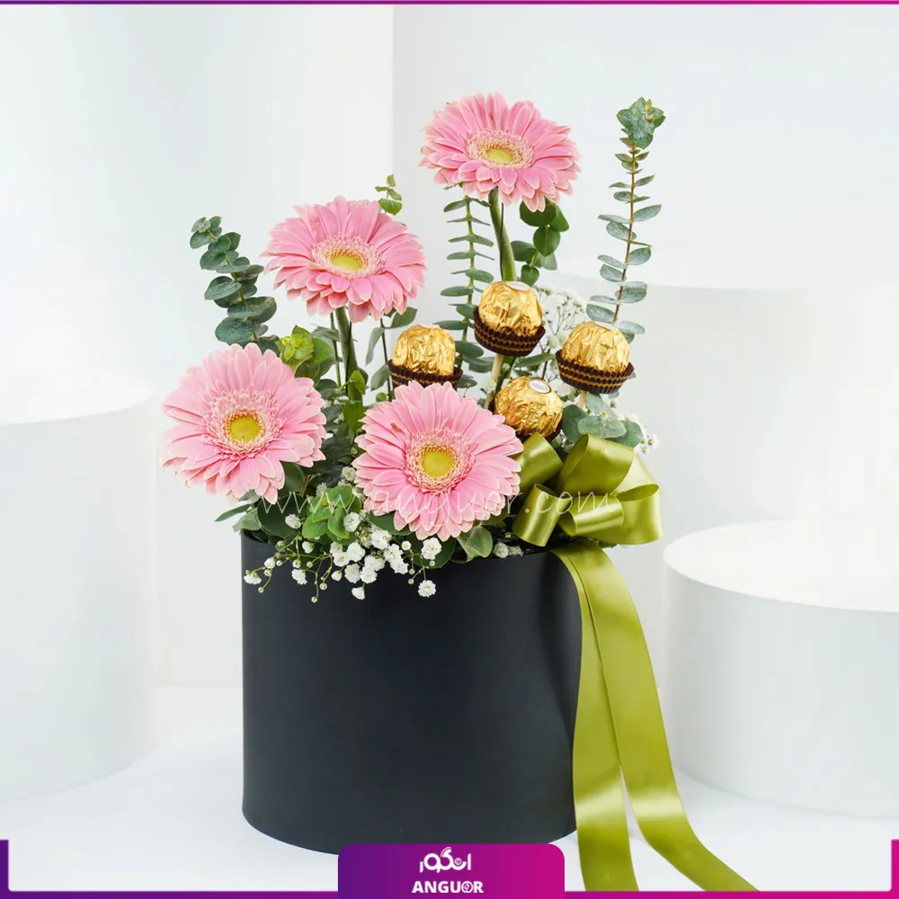 باکس گل ژربرا صورتی و شکلات