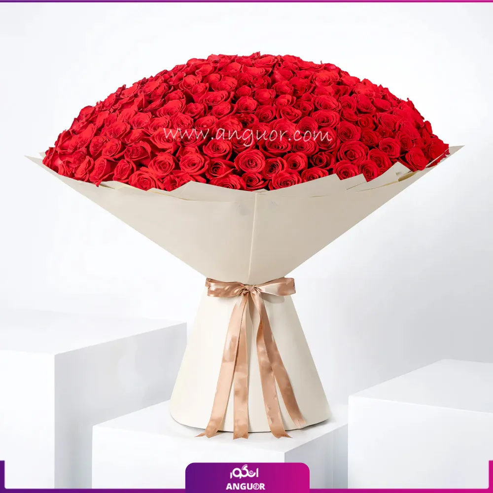 تجربه خرید گل لاکچری با دسته گل رز قرمز 365 شاخه