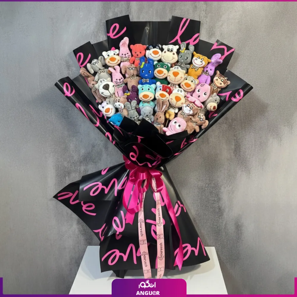 دسته گل و عروسک رنگارنگ