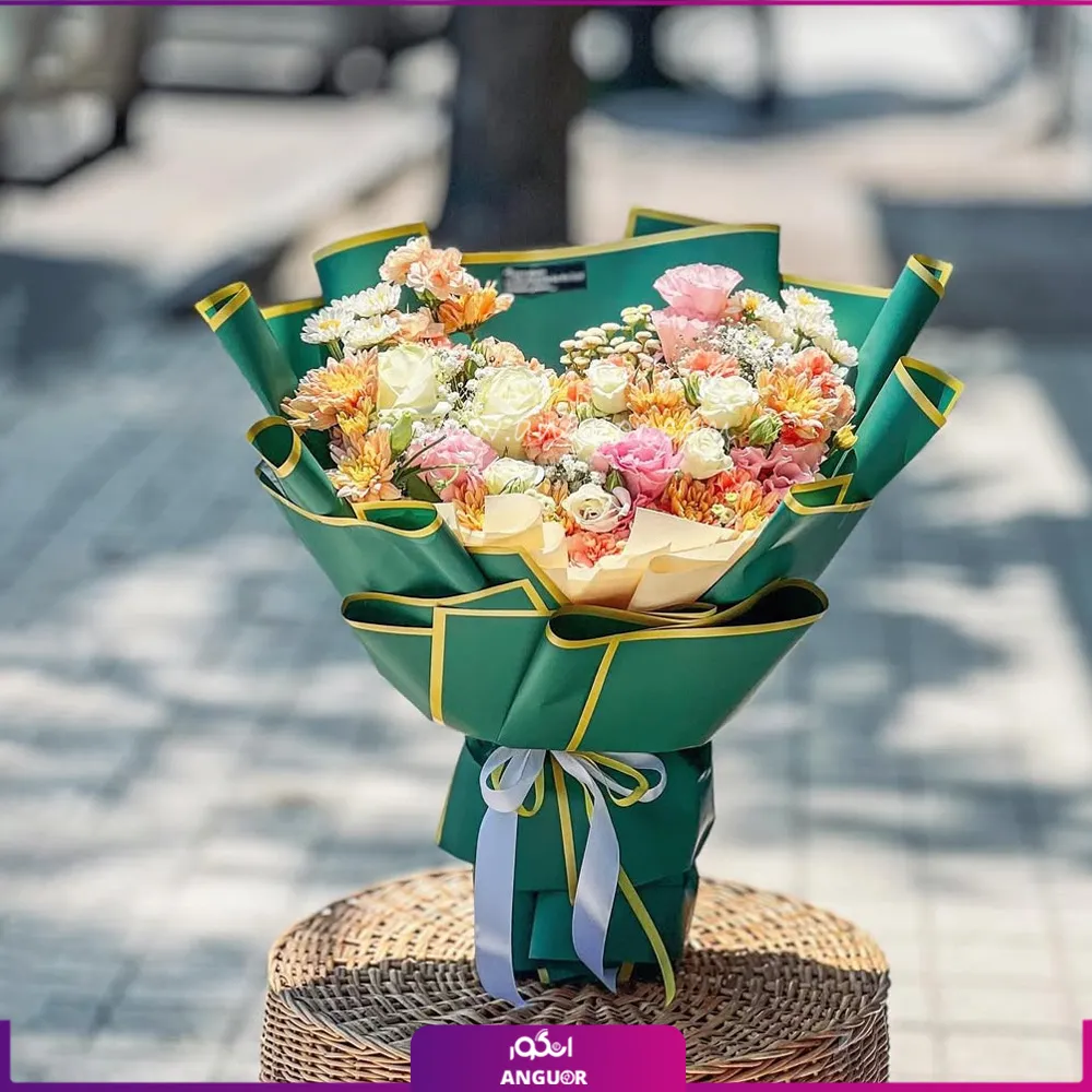 اگر بهدنبال یک دسته گل خاص و شیک هستید که هم ظاهری چشمنواز داشته باشد و هم حسی گرم و صمیمی را منتقل کند، این دسته گل گزینهای ایدهآل برای شماست.