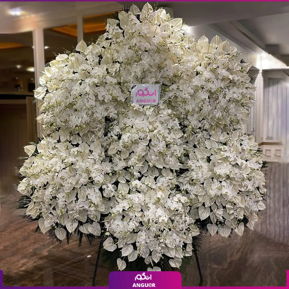 تاج گل ترحیم لاکچری با ترکیبی از گلهای آنتوریوم و ارکیده، جلوهای کمنظیر از زیبایی، وقار و احترام را در مراسم ترحیم یا یادبود عزیزان به تصویر میکشد. حضور آنتوریوم با برگ درخشان و فرم منحصربهفرد خود، نشانی از ماندگاری و استقامت است؛ در حالیکه ارکیده، نماد ظرافت، عشق پاک و حسرتی دلنشین در نبود عزیزان بهشمار میرود.