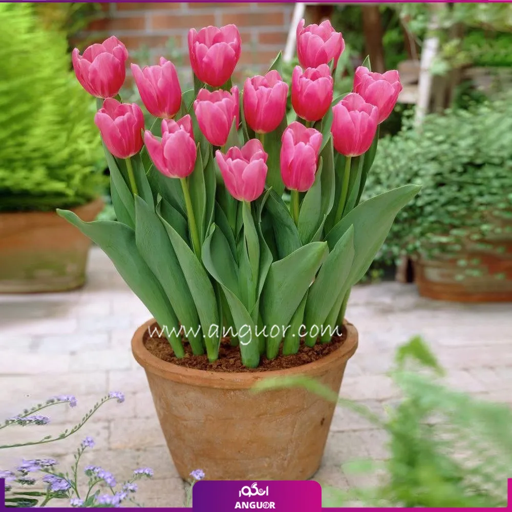 گلدان سفالی با 13شاخه لاله (صورتی)