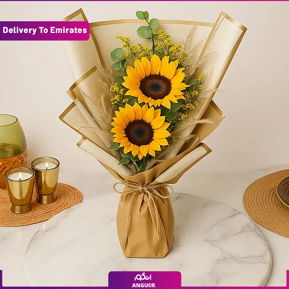2 شاخه گل آفتابگردان (تحویل در دبی)