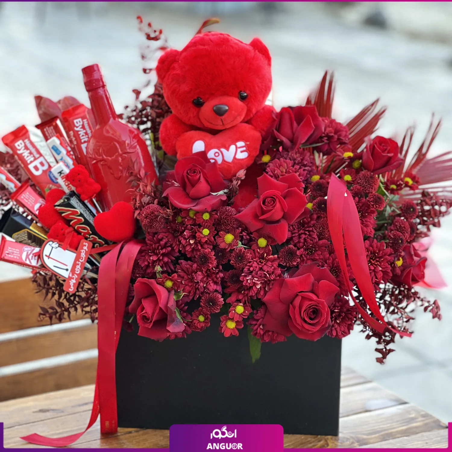 باکس عروسک و گل تمام عیار با تم قرمز