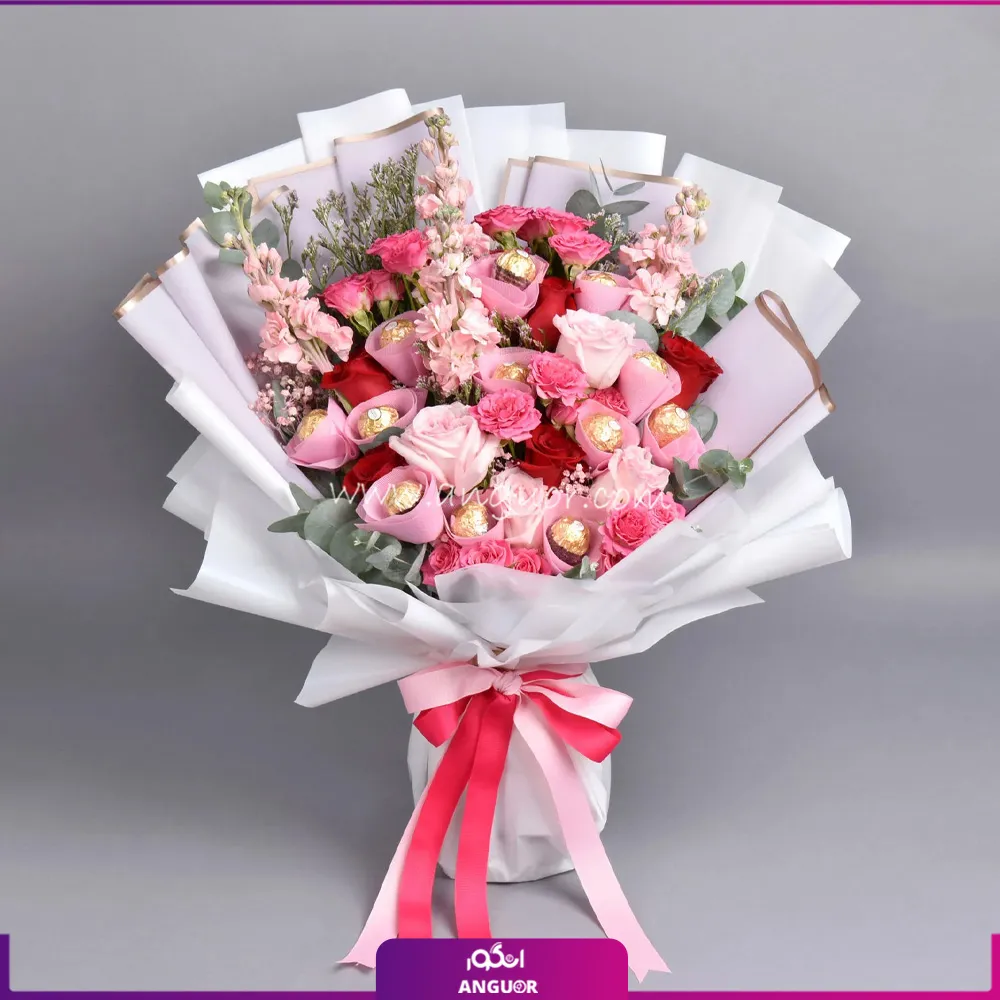 ترکیب این 2 گل در کنار شکلاتهای خوشمزه، دسته گلی رؤیایی خلق میکند که هر کسی با دیدنش غافلگیر خواهد شد.