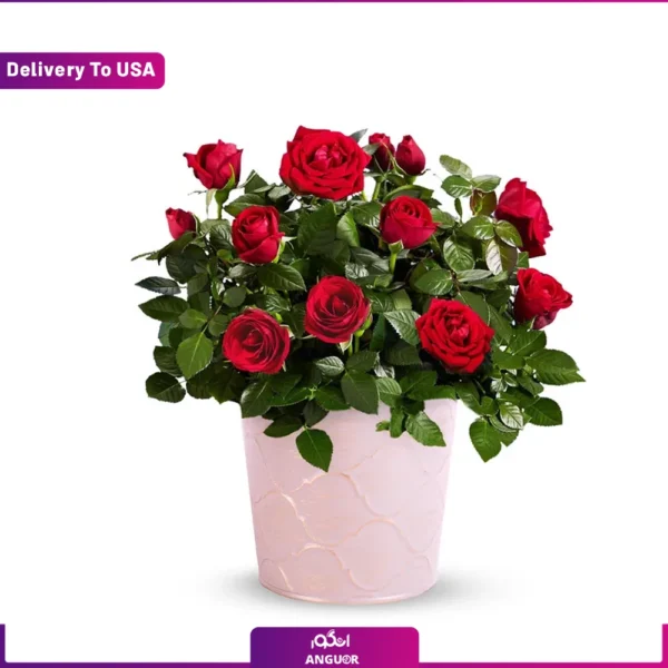 گلدان رز مینیاتوری قرمز (تحویل در امریکا)